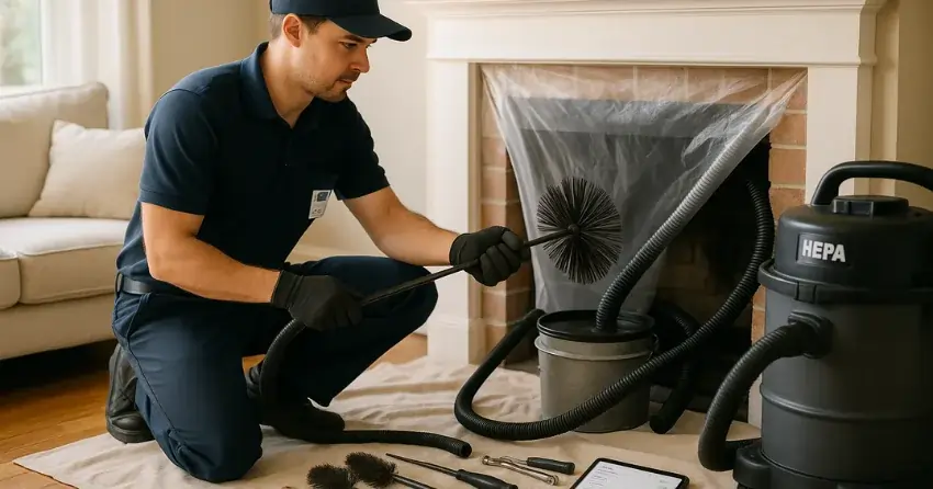 For wood burning systems, we focus heavily on creosote removal, smoke chamber cleaning, and draft performance. For gas fireplaces that still vent through a chimney, we clear the flue, check visible venting, and make sure there is no obstruction that could affect combustion byproducts. If you are unsure what type of system you have in Toronto, we will walk you through it during your appointment and explain how we keep it working safely.